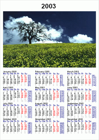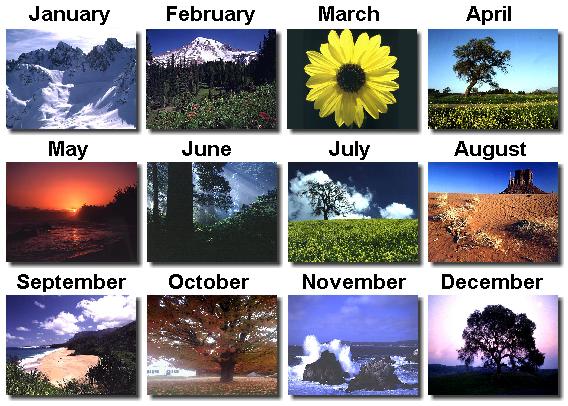 The "1 Year + View" calendar report show a full 12 month calendar for the selected year along with the current month's nature image. An example is shown below: