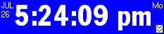 The Desktop Clock provides a handy reminder of the current time on your Windows desktop even when the main Anno Domini window is not visible. There is a choice of four different clock views depending on the size chosen and all clock views show the day of week, date and time. Examples of each are shown below: