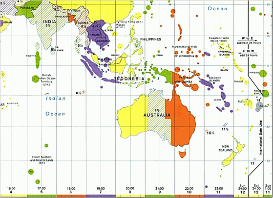 In the Location screen you can now view and pan with the mouse a large-scale map of the whole world which shows all current time-zones. There is a choice of two sizes of viewing screen which you can easily swap between so that the times of each of your 8 chosen cities can still be viewed.