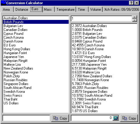 The Conversion Calculator is now available to Standard users users and has now been revised to include real-time daily updates of up to 23 different foreign currencies with four digits of precision. All data is downloaded automatically from the European Central Bank.