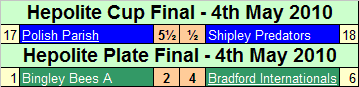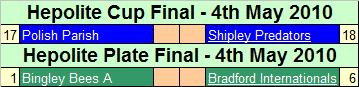 for 2009-2010 Hepolite Cup/Plate Finals Results - 4th May 2010