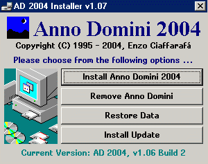 The Anno Domini 2004 Installer will appear showing four possible options as below: