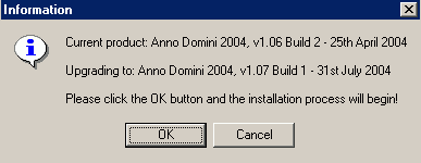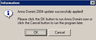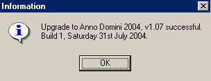 Click the “OK” button and Anno Domini 2004 will appear and the upgrade is completed.