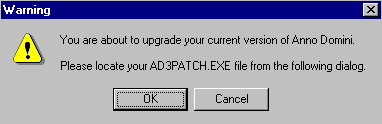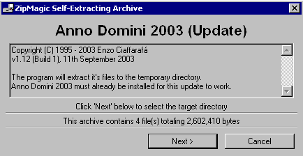 If you are running v1.06 (Build 2) and wish to upgrade to Anno Domini 2003, please click here to update to v1.08, Build 1 of Anno Domini 2003. Once v1.08 is installed, you may use the following update to download the very latest version.