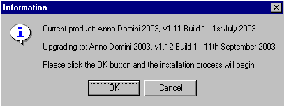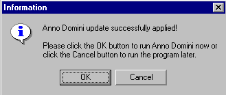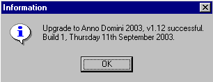 Click the “OK” button and Anno Domini 2003 will appear and the upgrade is completed.