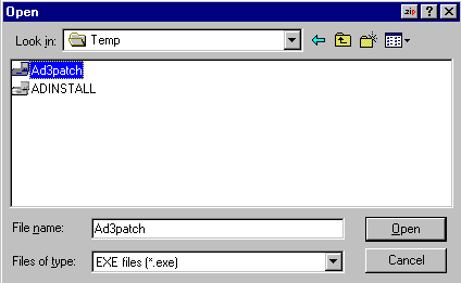 Click on the AD3PATCH.EXE filename from your temporary directory and click the “Open” button;