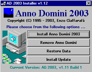 The Anno Domini 2003 Installer will appear showing four possible options as below: