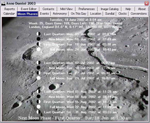 Display graphically the current moon phase and