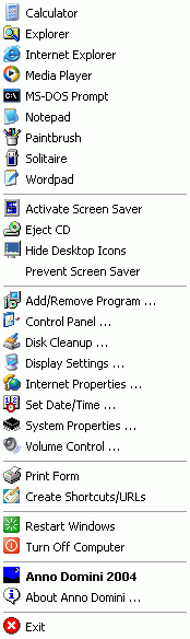 XP and 2000 users now see miniature icons for common Windows applications and desktop utilities which are run from the Anno Domini menu.
