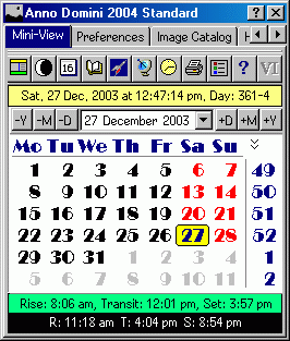You can also view a much smaller window via the Mini-View tab which displays just the calendar but with full access via icons to all other features of Anno Domini 2004: