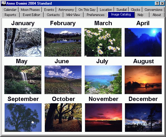 Finally, you can preview all twelve images of nature via the Image Catalog tab. Further packs of images can be added later.