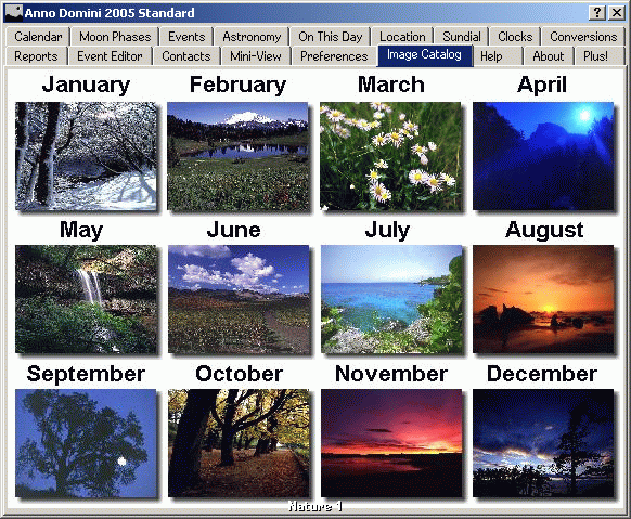 Finally, you can preview all twelve images of nature via the Image Catalog tab. Further packs of images can be added later.