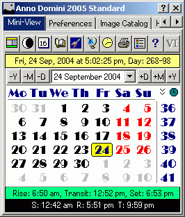 You can also view a much smaller window via the Mini-View tab which displays just the calendar but with full access via icons to all other features of Anno Domini 2005:
