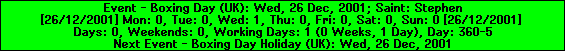 View calendar statistics between any two chosen dates, calculated on the fly each time you select a date on the calendar. Statistics such as days elapsed, number of weekends, number of working days, and the number of each individual week days between the chosen dates are displayed. Also, for the currently selected calendar date, you can view the event that occurs on that date and the next event which will occur in Anno Domini's database of events;