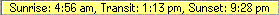 For each calendar date selected, you can view the times of sunrise, transit and sunset for your chosen location on Earth;