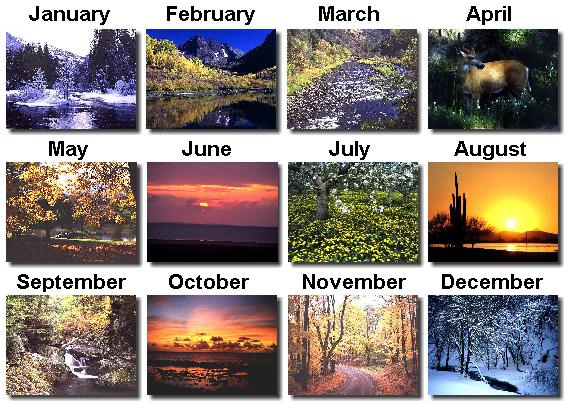 The "1 Year + View" calendar report show a full 12 month calendar for the selected year along with the current month's nature image. An example is shown below:
