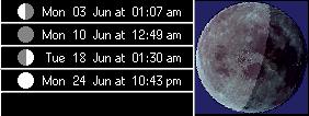 The Moon Phases tab will display for the currently selected month and the subsequent two months, the dates and times of all moon phases. The background image of the Moon can also be changed to an image of your choosing: